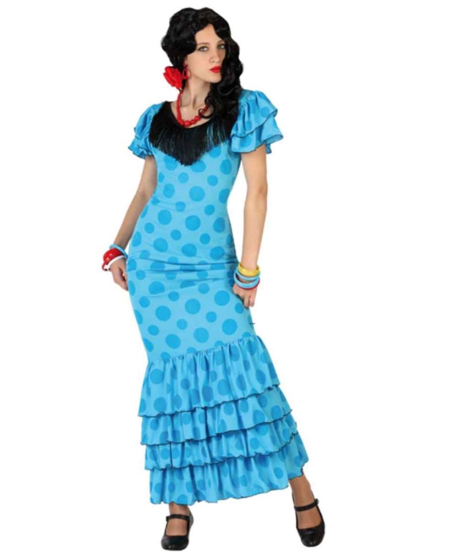 DISFRAZ DE SEVILLANA FLAMENCA AZUL PARA MUJER