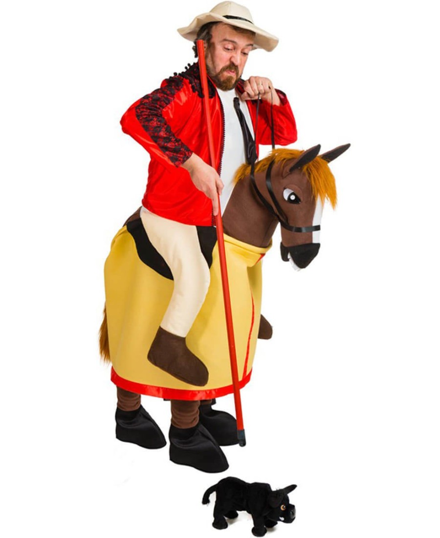 Compuesto por : Traje con Cuerpo de Caballo con Correa, Chaqueta, Cubrebotas haciendo el efecto de las piernas del caballo y Sombrero.