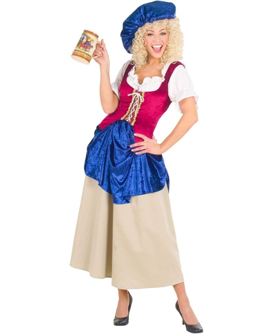 Consigue tu disfraz medieval para mujer con vestido, chaleco y gorra y conviértete en una auténtica aldeana de la Edad Media en tu próxima fiesta.