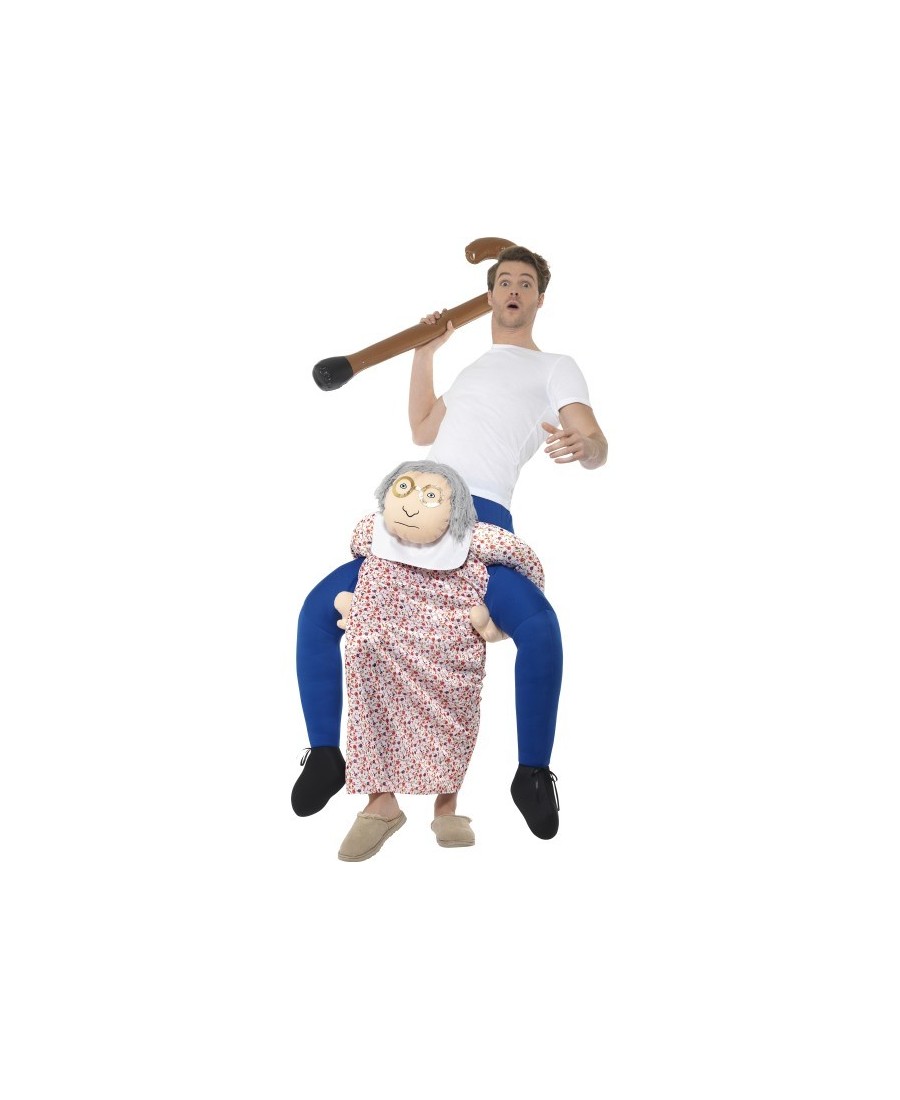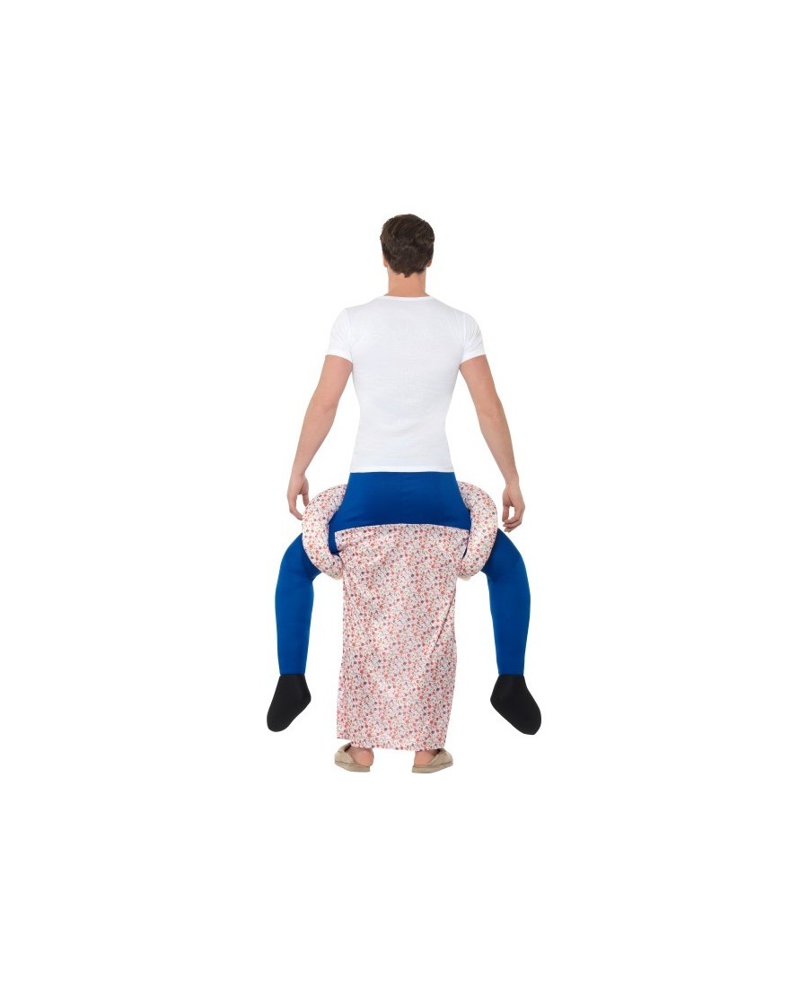 Con este divertido disfraz de Abuelita con hombre a hombros, serás el más divertido de tu próxima fiesta de carnaval o despedida de soltero.