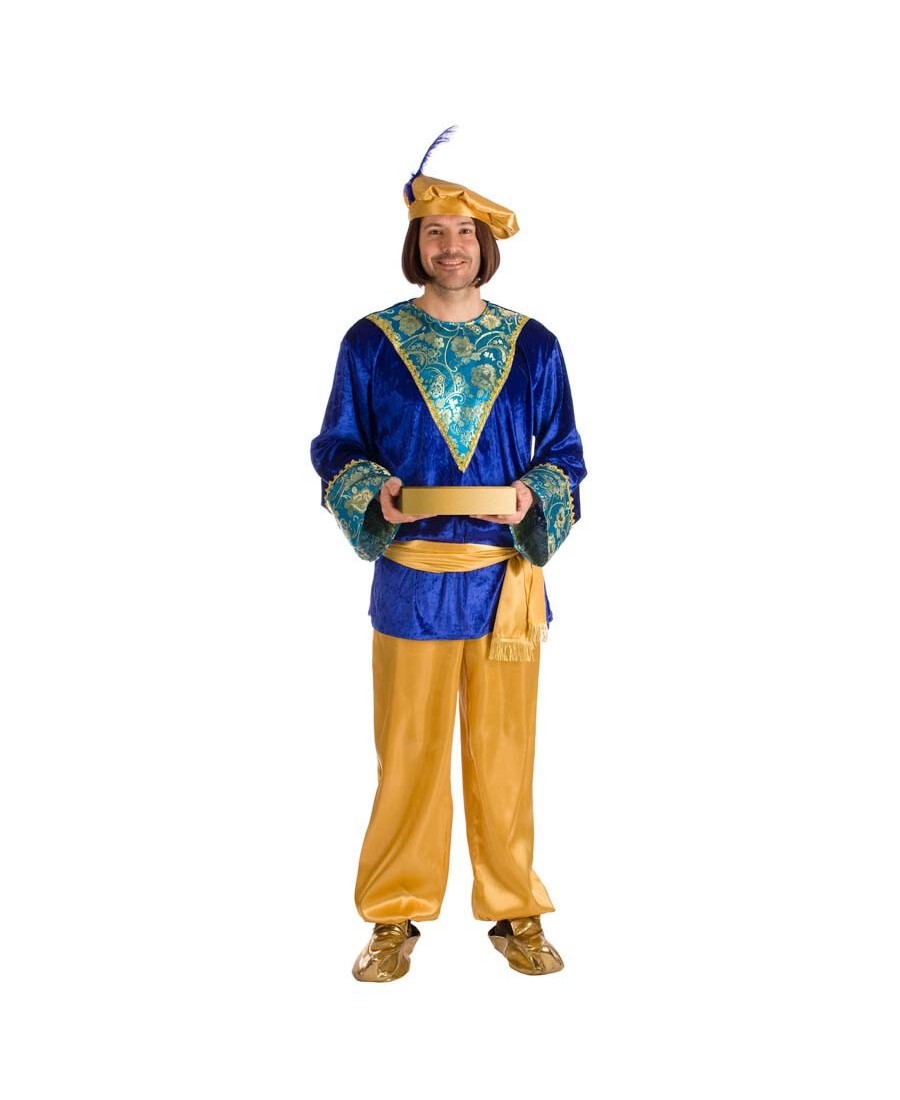 DISFRAZ DE PAJE MELCHOR AZUL Y DORADO PARA HOMBRE