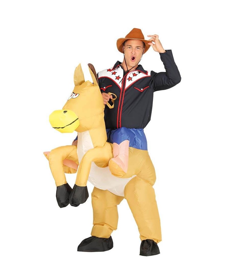 Con este disfraz de Vaquero hinchable para hombre, conseguirás disfrazarte de un vaquero con caballo en tu próxima fiesta de carnaval. un disfraz original y divertido perfecto también para fiestas infantiles o para despedidas de soltero.