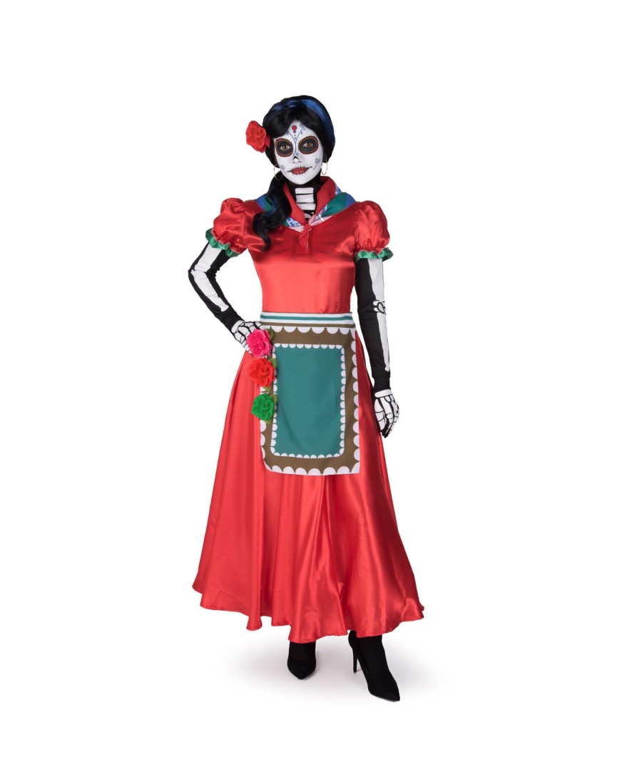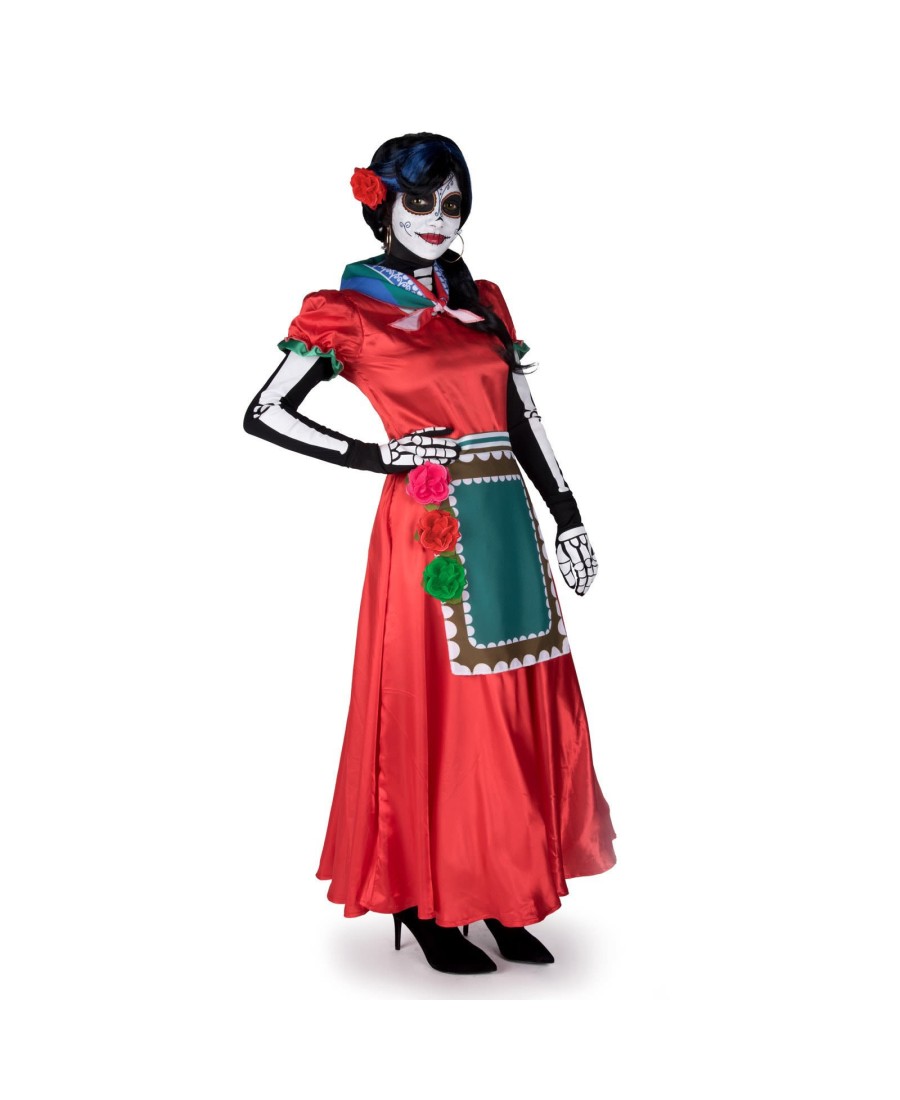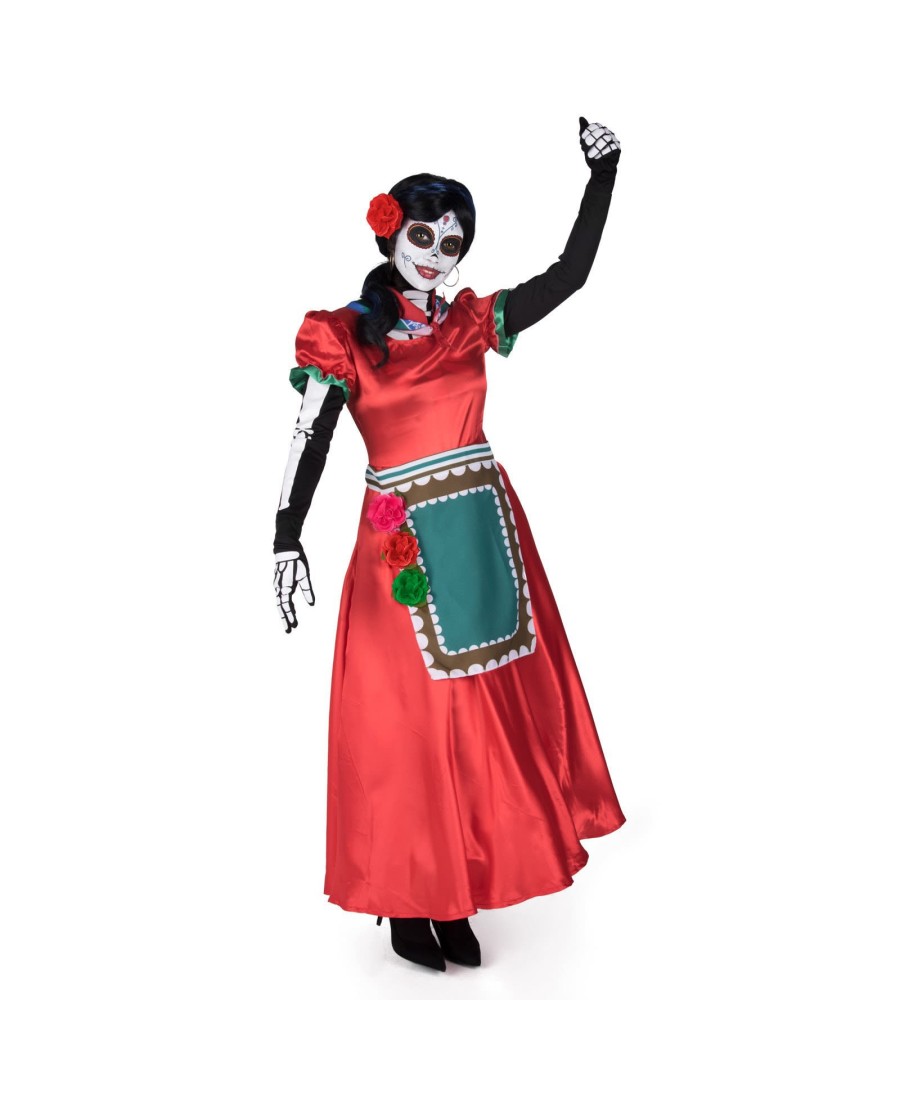 Con este disfraz de Catrina para mujer, te convertirás en una calavera mejicana en tu próxima fiesta de disfraces. Un disfraz muy vistoso para fiestas de carnaval o Halloween con el que disfrazarte también como los personajes de la película de Disney CoCo.