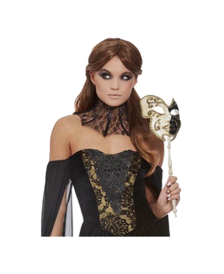 DISFRAZ DE VENECIANA NEGRO CUELLO ENCAJE PARA MUJER