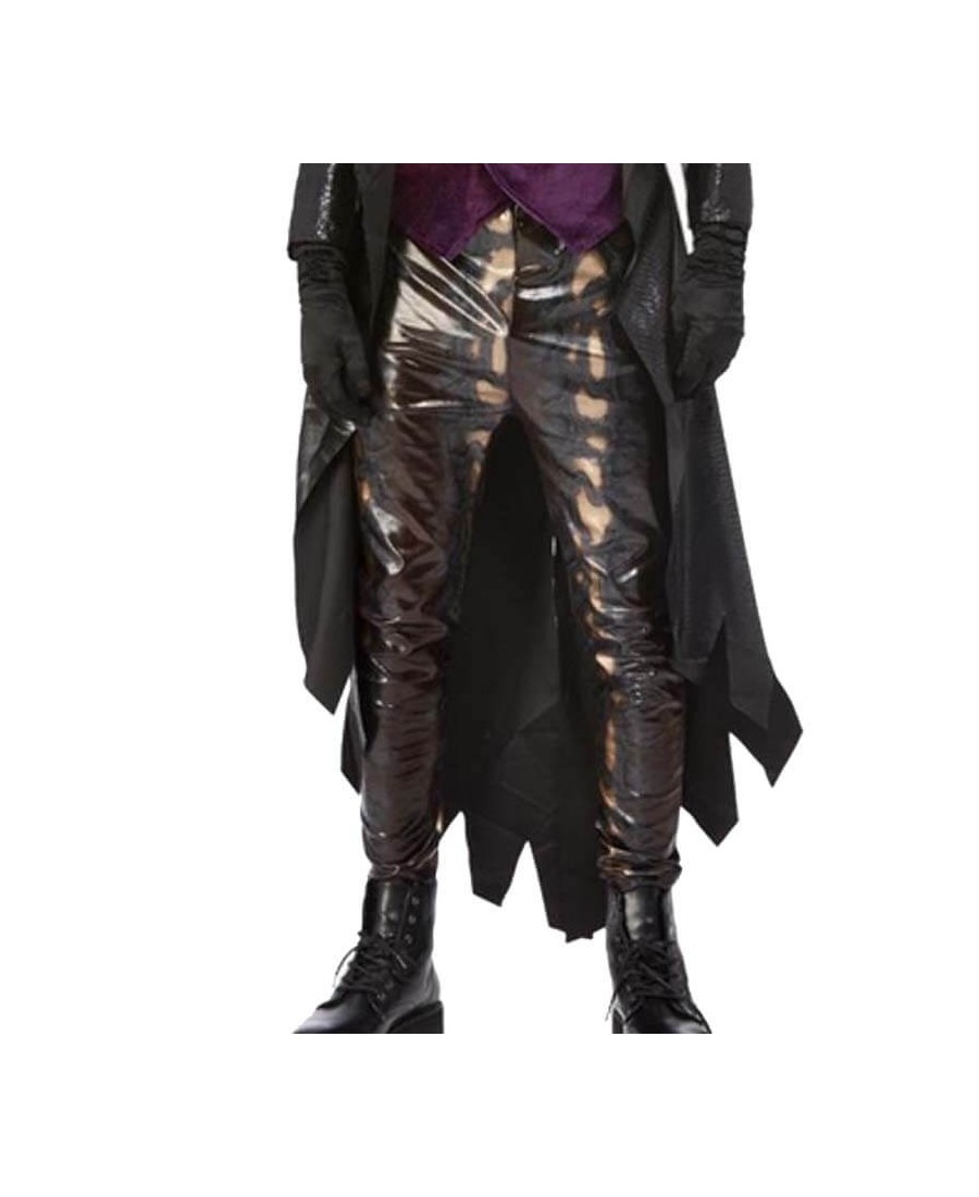 Compuesto por Chaqueta larga con chaleco morado y dacha en los hombros, pantalones ajustados tipo leggins, Chistera de tela decorada y Collar.