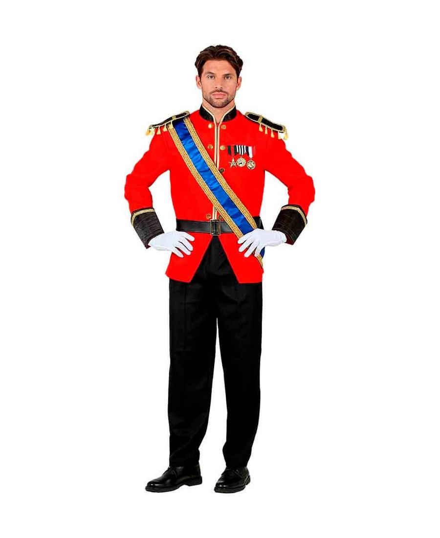 Conviértete en Príncipe con este disfraz de Príncipe para hombre. Un disfraz muy similar al uniforme que lucen los miembros de la realeza británica, el uniforme de Coronel de la Guardia Irlandesa.