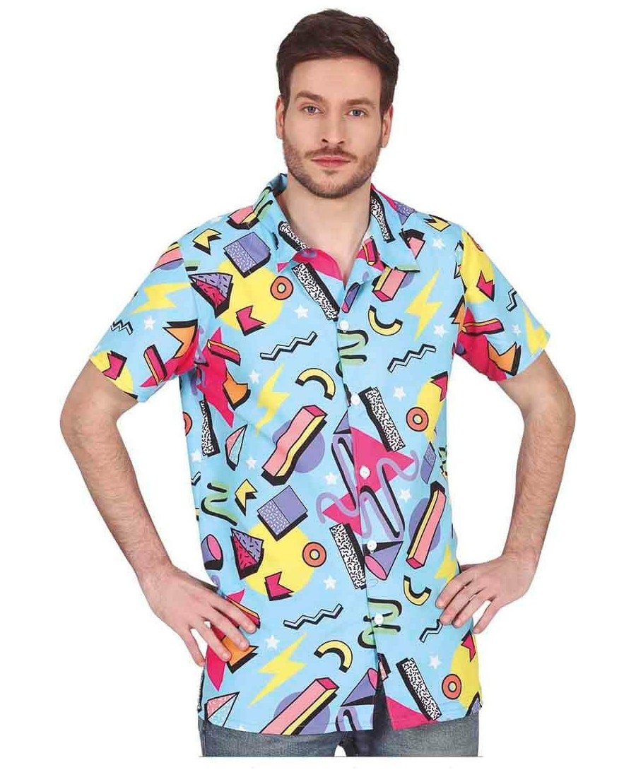 CAMISA AÑOS 80 AZUL DIBUJOS PARA HOMBRE
