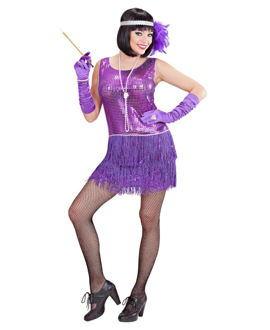 Este traje recrea el estilo inconfundible de las bailarinas del Charleston con un diseño brillante y lleno de movimiento.