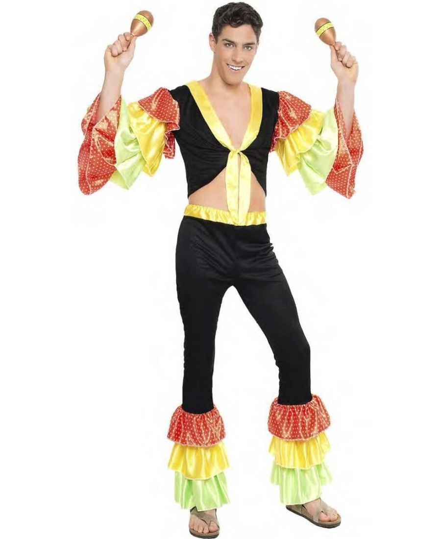 Siente el ritmo y la diversión con nuestro disfraz de rumbero, perfecto para carnavales, fiestas temáticas o celebraciones tropicales. Este colorido atuendo incluye detalles llamativos como volantes, estampados vibrantes y accesorios que evocan la esencia de la música y la danza caribeña. Diseñado con materiales ligeros y cómodos, te permitirá moverte con facilidad y disfrutar al máximo de la fiesta. Ideal para quienes quieren destacar con un look lleno de energía y estilo. ¡Haz que cada momento sea una fiesta con este divertido disfraz de rumbero!