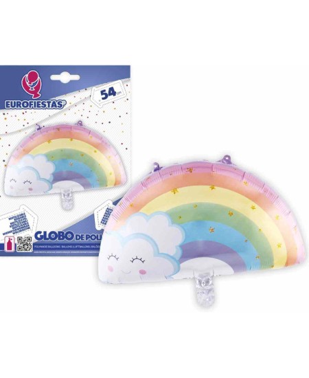 Decora tu fiesta con ternura y color con este globo foil en forma de arcoíris pastel con nube sonriente. Con un tamaño de 54 cm, es ideal para baby showers, cumpleaños infantiles o decoraciones temáticas suaves y encantadoras.