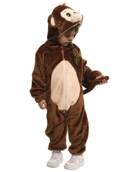 Haz que tu pequeño se divierta como nunca con este adorable disfraz de mono para niño o niña. Su diseño de cuerpo entero en tono marrón con detalle en el abdomen claro y capucha con carita de mono lo convierte en un atuendo simpático, cómodo y lleno de encanto.