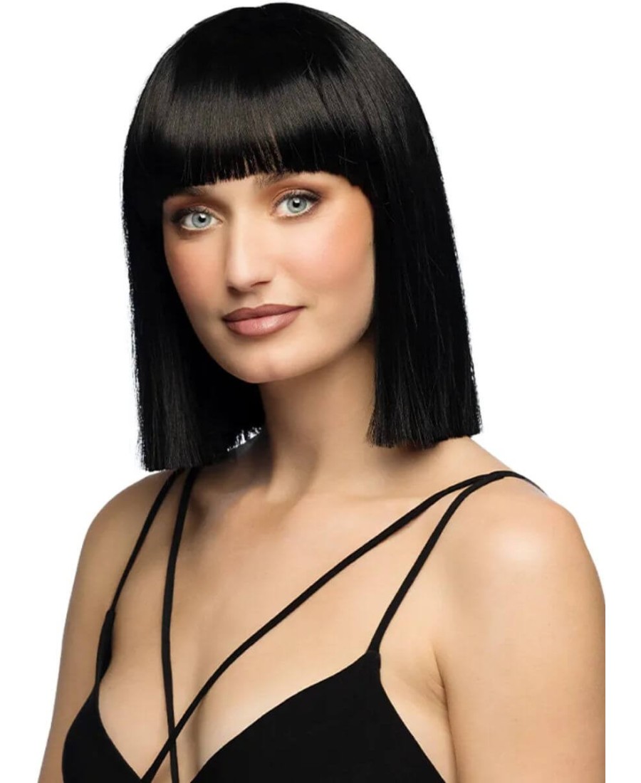 Peluca negra corta con flequillo – Estilo bob elegante y versátil