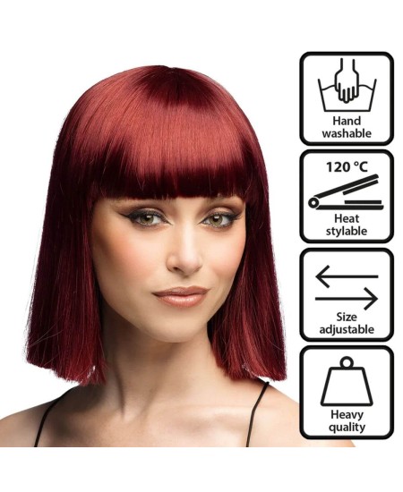 Conviértete en el centro de todas las miradas con esta peluca roja corta con flequillo y disfruta de un estilo único, llamativo y lleno de carácter.