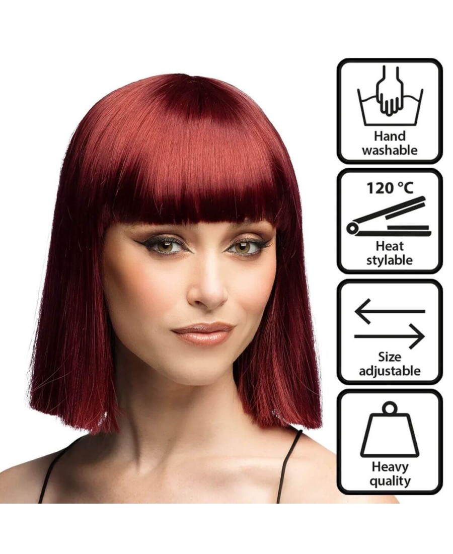 Peluca roja corta con flequillo – Look atrevido y moderno para disfraces y cosplay