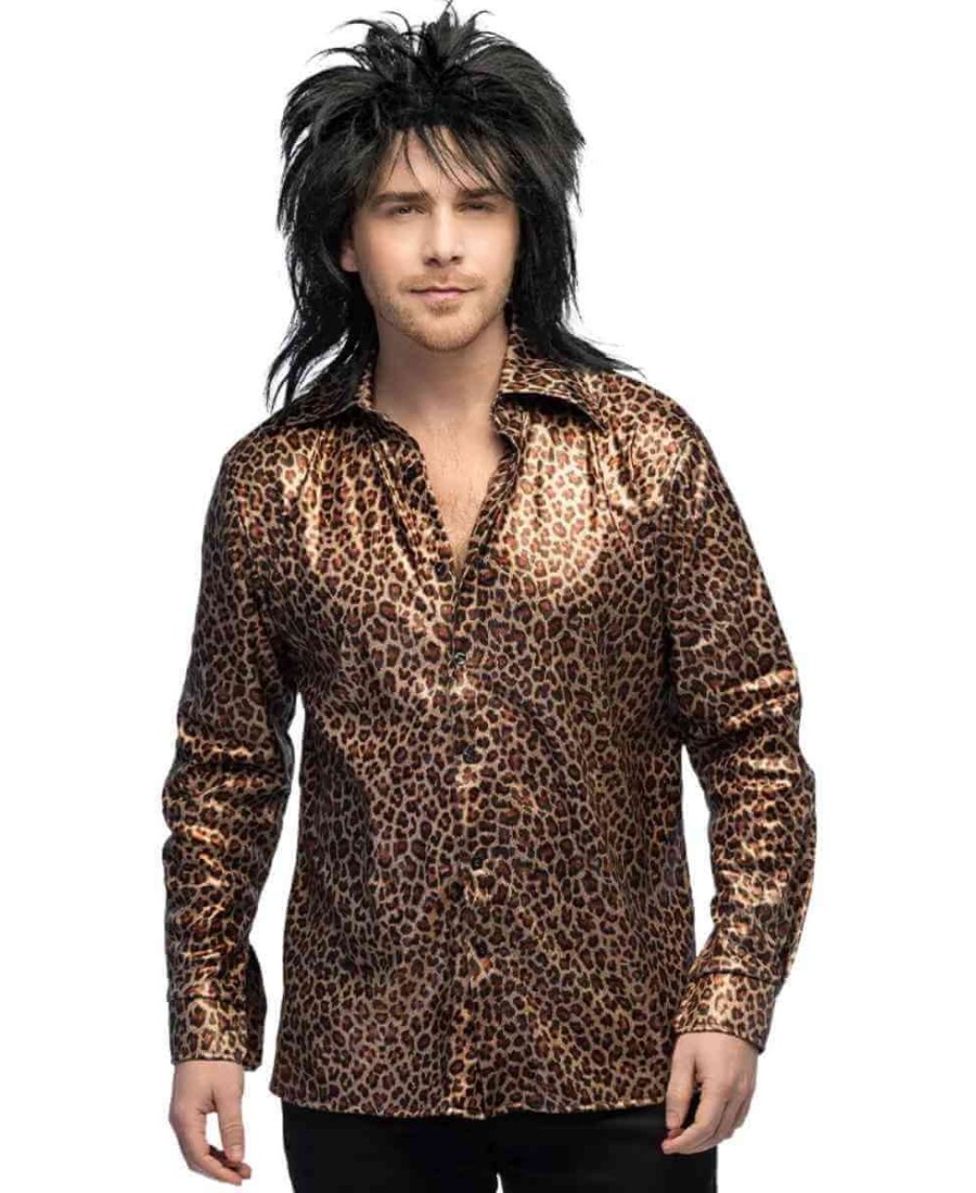 Luce un look salvaje y lleno de personalidad con esta camisa de leopardo para hombre, ideal para fiestas temáticas, noches de baile, Carnaval, Halloween o cualquier evento donde quieras destacar con un estilo atrevido y original. Su diseño brillante con estampado animal print evoca la moda retro de los años 70 y 80, convirtiéndola en la prenda perfecta para quienes buscan un disfraz de rockero, estrella de cine o personaje extravagante.