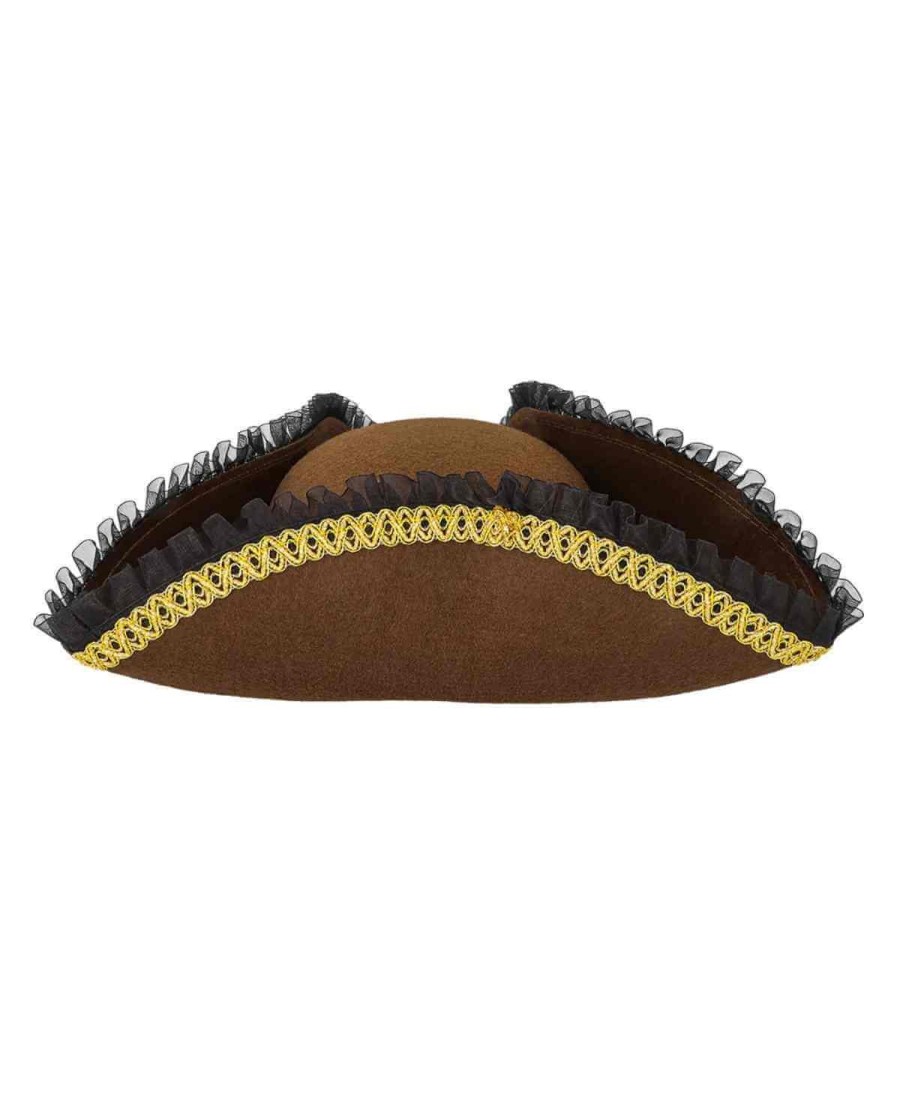 SOMBRERO PIRATA MARRON CON LAZO DORADO