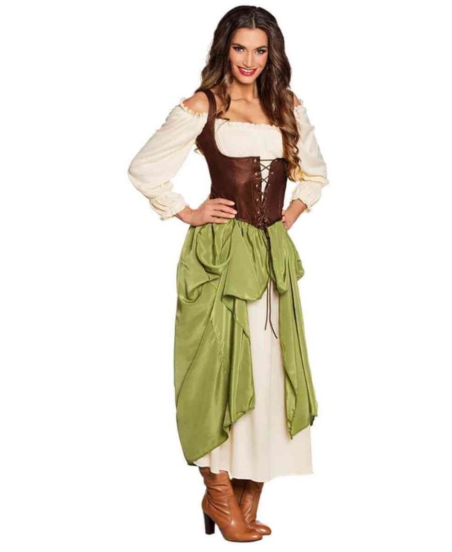 El disfraz de aldeana medieval te transportará directamente a otra época, permitiéndote encarnar el espíritu libre y noble de las mujeres de antaño. Combínalo con unas botas altas o una corona de flores para completar un look digno de cualquier festival medieval o evento de cosplay.
