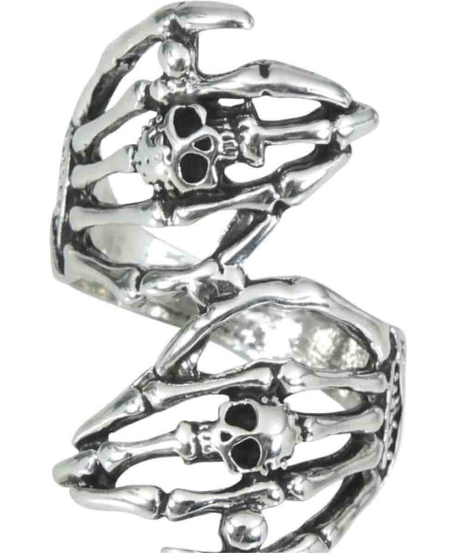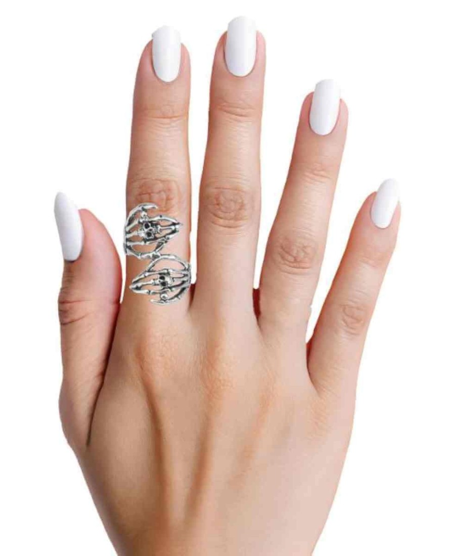 ANILLO CALAVERA DOBLE PLATEADO