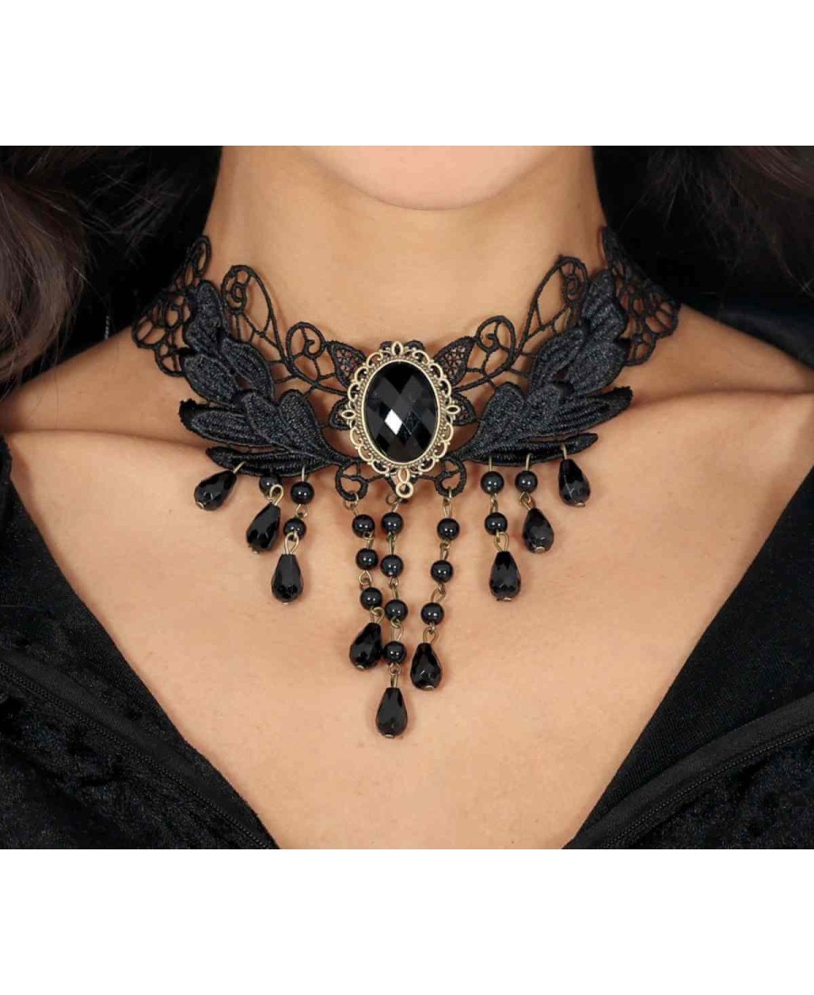GARGANTILLA NEGRA ENCAJE CON BROCHE NEGRO