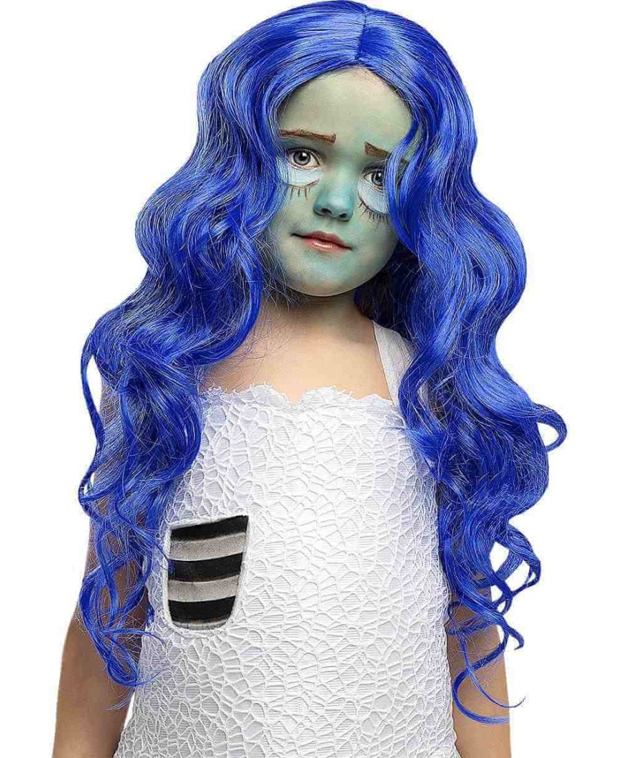 El color azul brillante y la melena larga y ondulada hacen que esta peluca de novia cadáver para niña destaque por su realismo y fidelidad al personaje. Es perfecta tanto para acompañar un disfraz completo de Emily como para jugar a recrear escenas del mundo de La Novia Cadáver en casa o en el colegio.