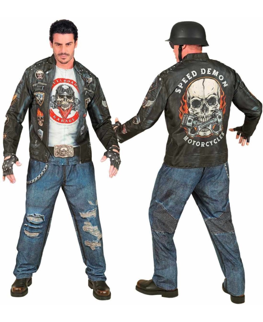 Ideal para fiestas de Halloween, carnaval o eventos temáticos de rock y carretera, este disfraz combina comodidad y carácter. Su acabado realista y los detalles en la espalda con el emblema “Speed Demon Motorcycles” te harán parecer un auténtico líder de banda.