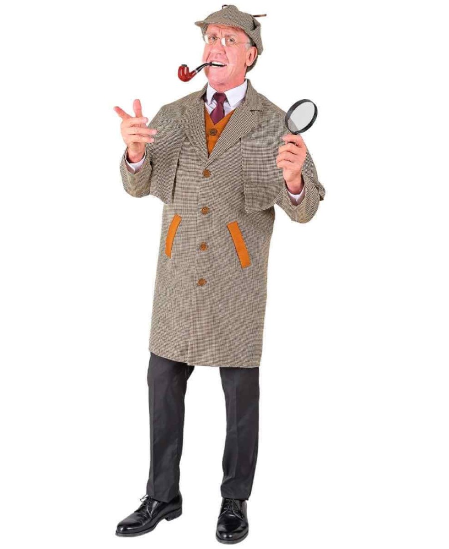 Descubre el misterio con estilo gracias a este disfraz de detective clásico para hombre, inspirado en el famoso Sherlock Holmes. Incluye abrigo con capa, chaleco, gorra tipo cazador y pipa, el conjunto perfecto para resolver cualquier caso con elegancia británica.