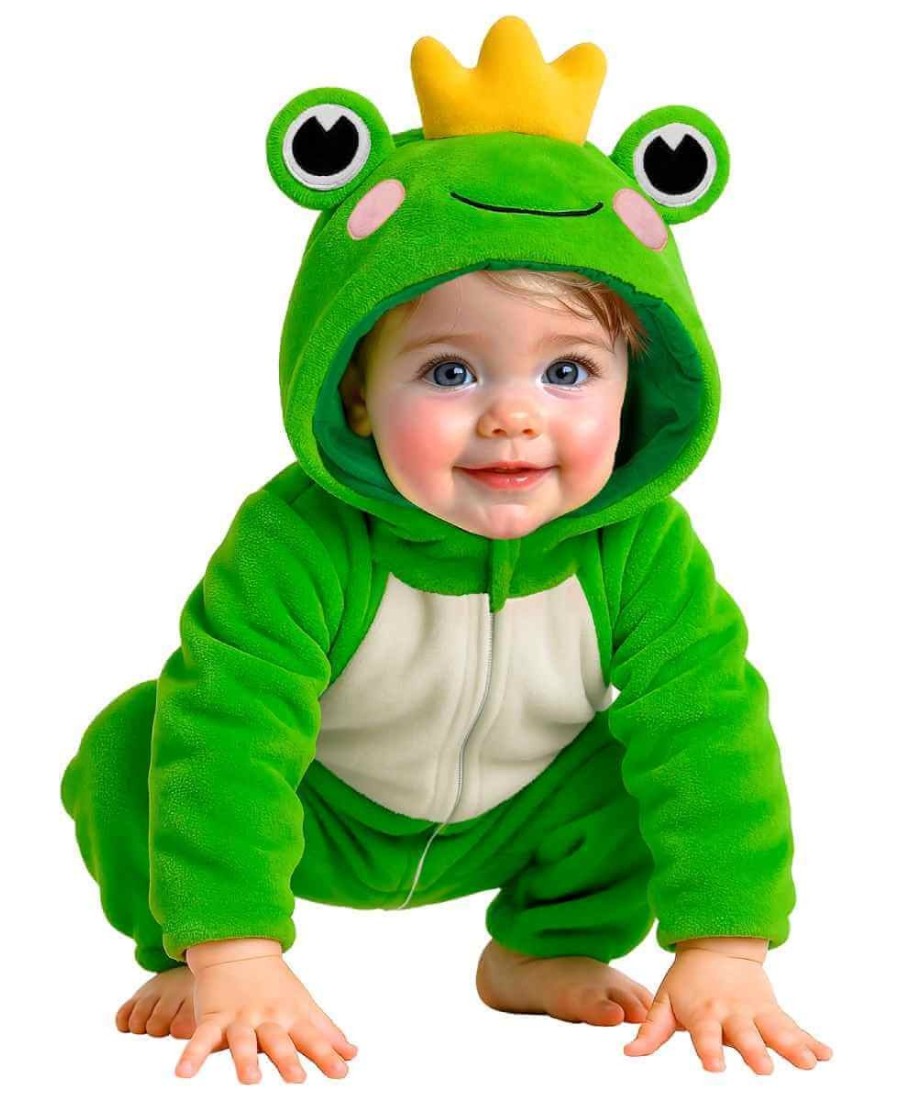 Este adorable disfraz de rana para bebé es perfecto para Carnaval, sesiones de fotos tiernas y cualquier ocasión especial. Suave, calentito y muy cómodo, está fabricado en tejido de peluche que cuida la piel del bebé mientras le permite moverse con libertad.