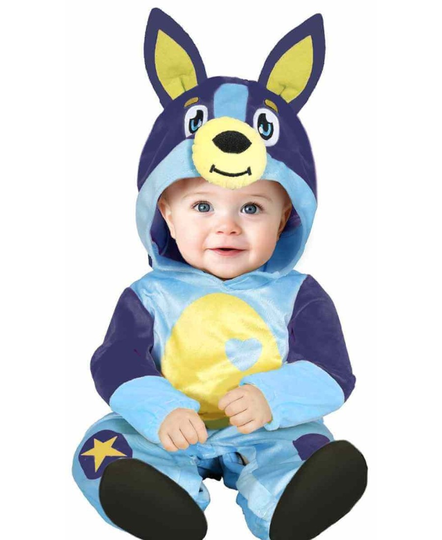 Si buscas un disfraz calentito, tierno y con un diseño inspirado en Bluey, este disfraz de perrito azul para bebé será un acierto seguro.