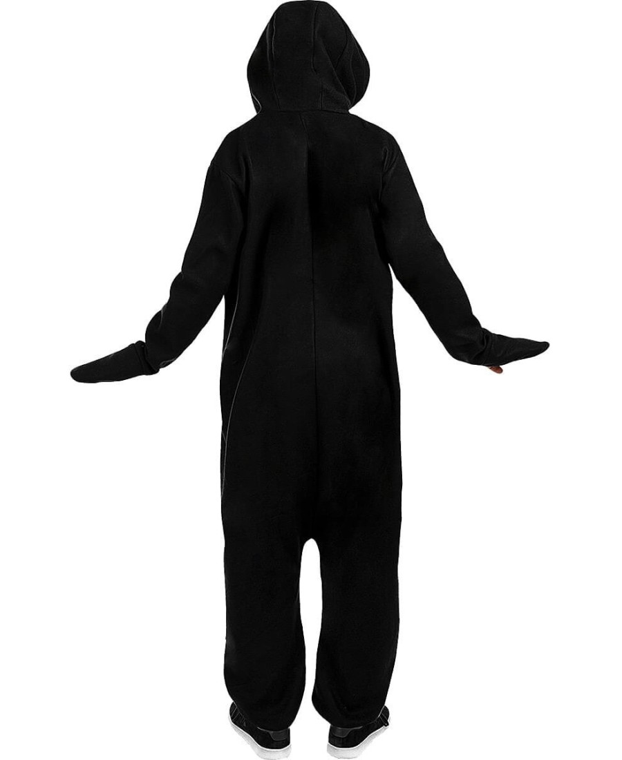 Este traje está diseñado en forma de mono de cuerpo entero, con cierre frontal de botones y una capucha con ojos, pico y detalles de pingüino. Cómodo, amplio y cálido, ideal para llevar encima de la ropa y moverte con total libertad.