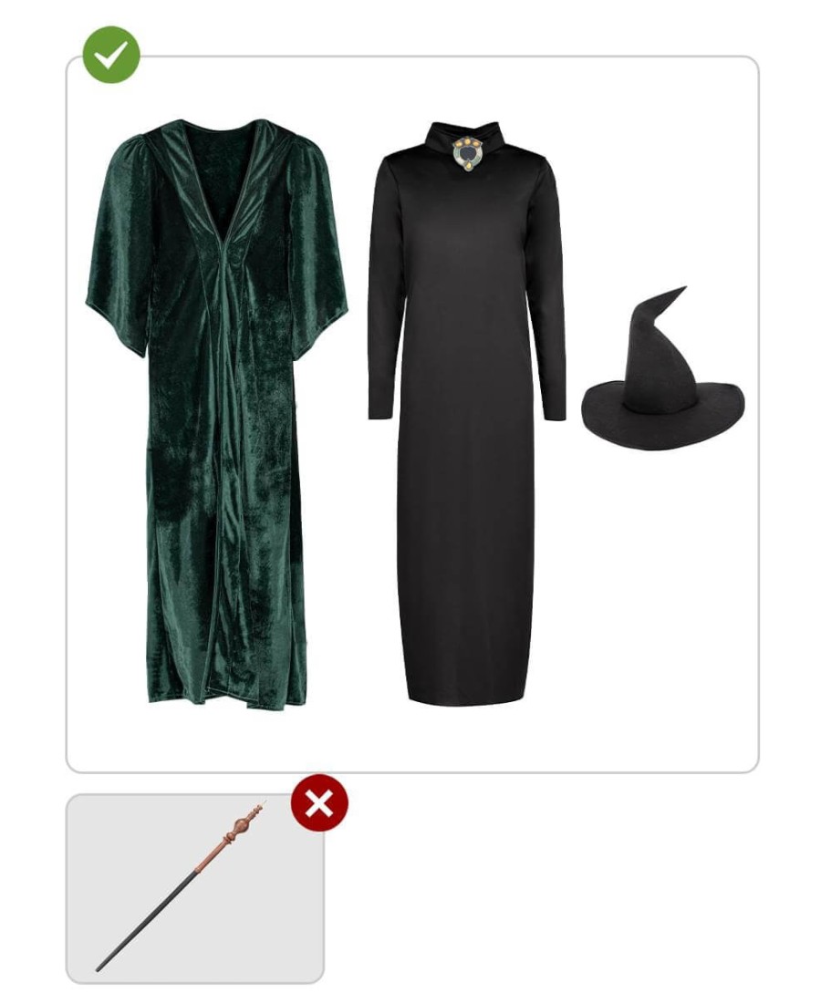 Este disfraz de McGonagall no incluye varita ni peluca, pero puede complementarse fácilmente con estos accesorios para lograr un look completo y aún más realista.