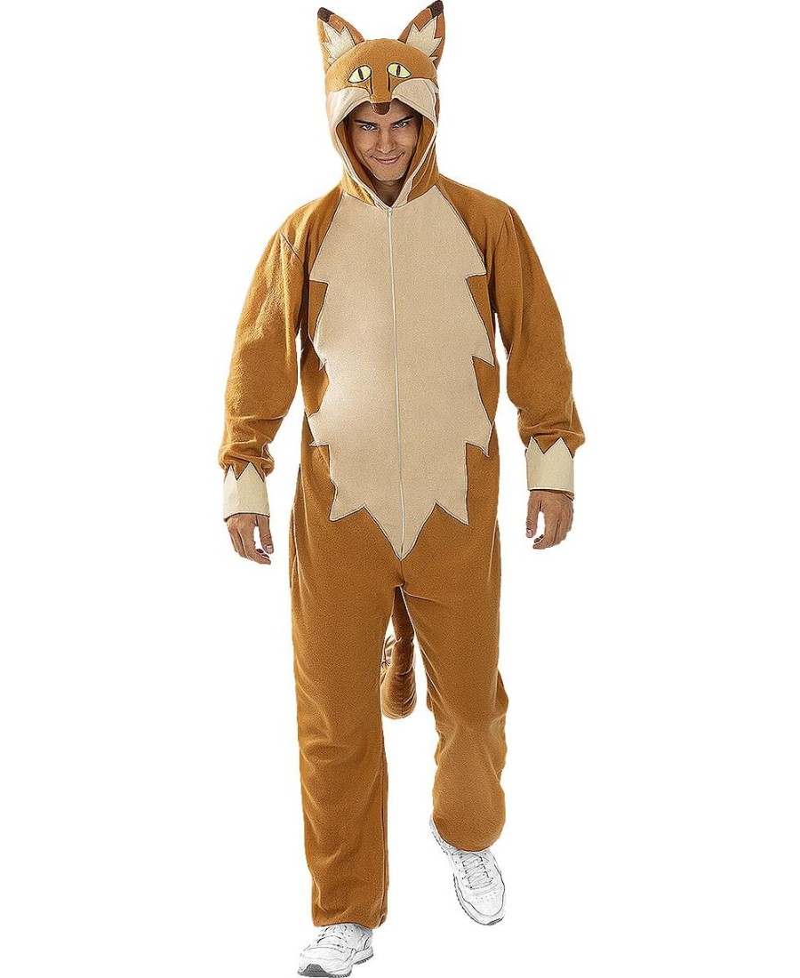 Este disfraz incluye un mono de una sola pieza con cremallera frontal, con detalles en pecho, mangas y piernas que simulan el pelaje del animal. La capucha lleva incorporada la cara del zorro con orejas erguidas y mirada expresiva, mientras que la cola cosida en la parte trasera añade un toque extra de realismo y diversión.