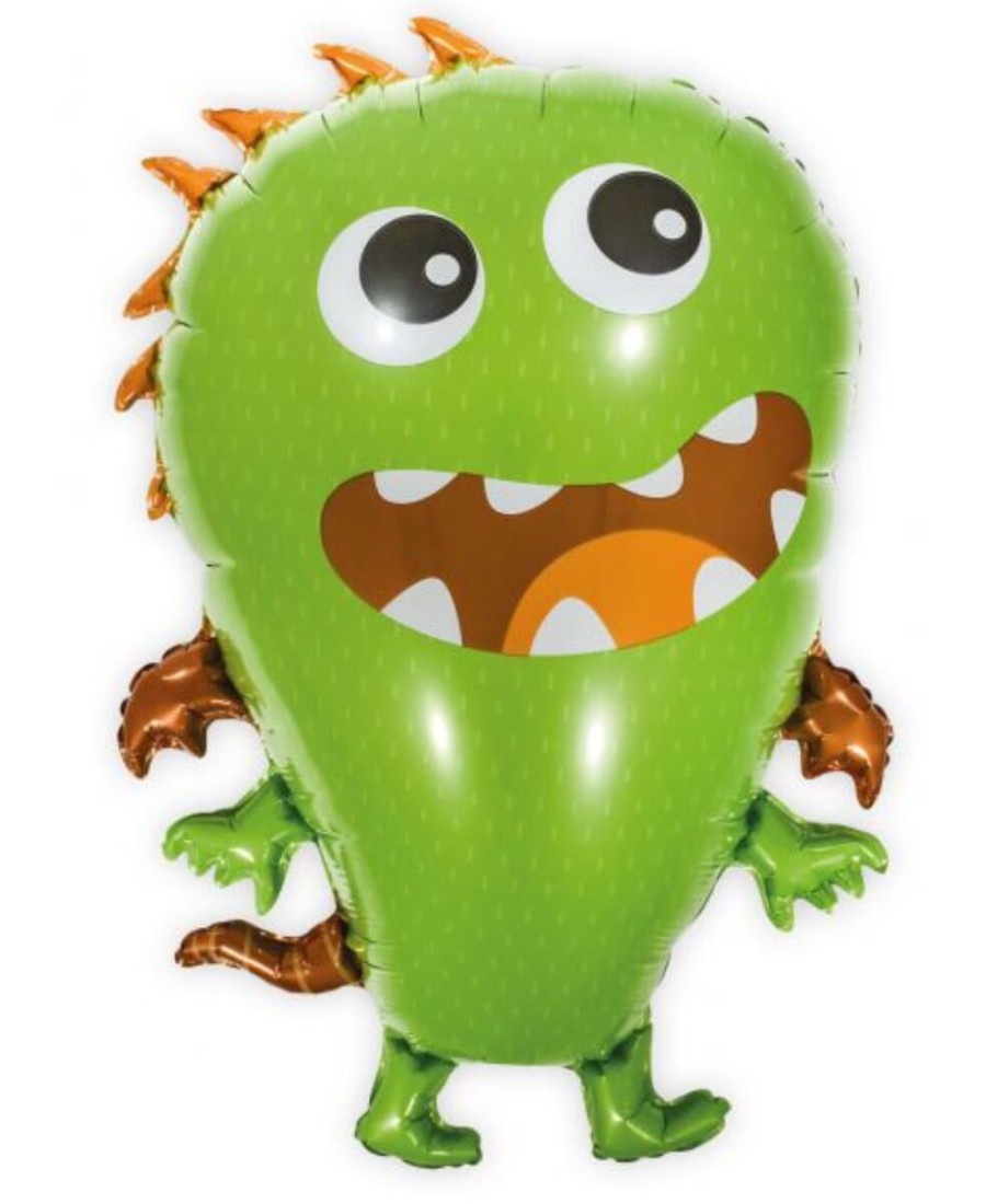 Este producto incluye un globo foil en forma de monstruo en color verde de aproximadamente 70 cm una vez inflado, diseñado para ofrecer un acabado brillante y resistente que mantiene su forma durante toda la celebración.