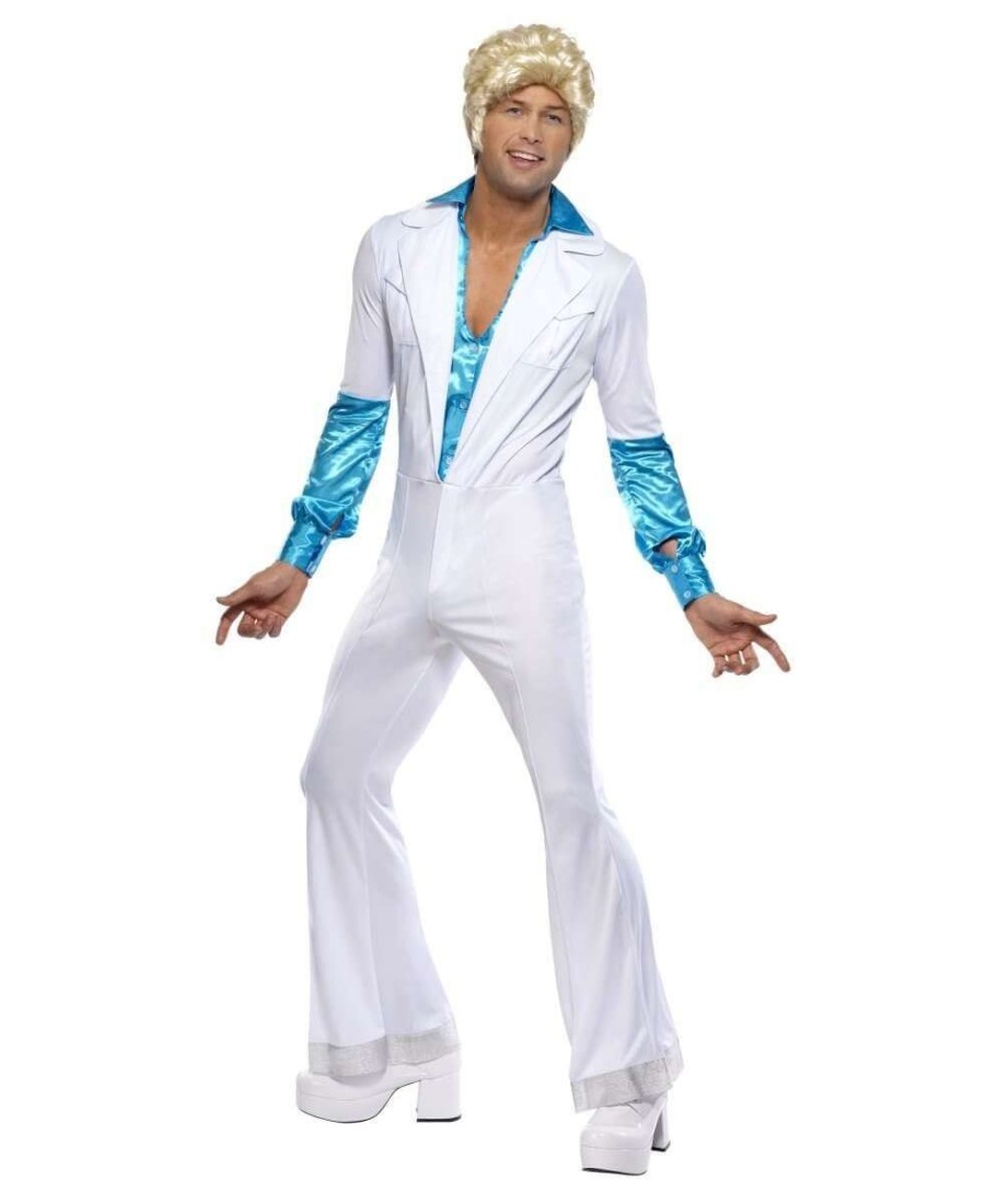 DISFRAZ DE ABBA CHICO MONO BLANCO Y AZUL PARA HOMBRE