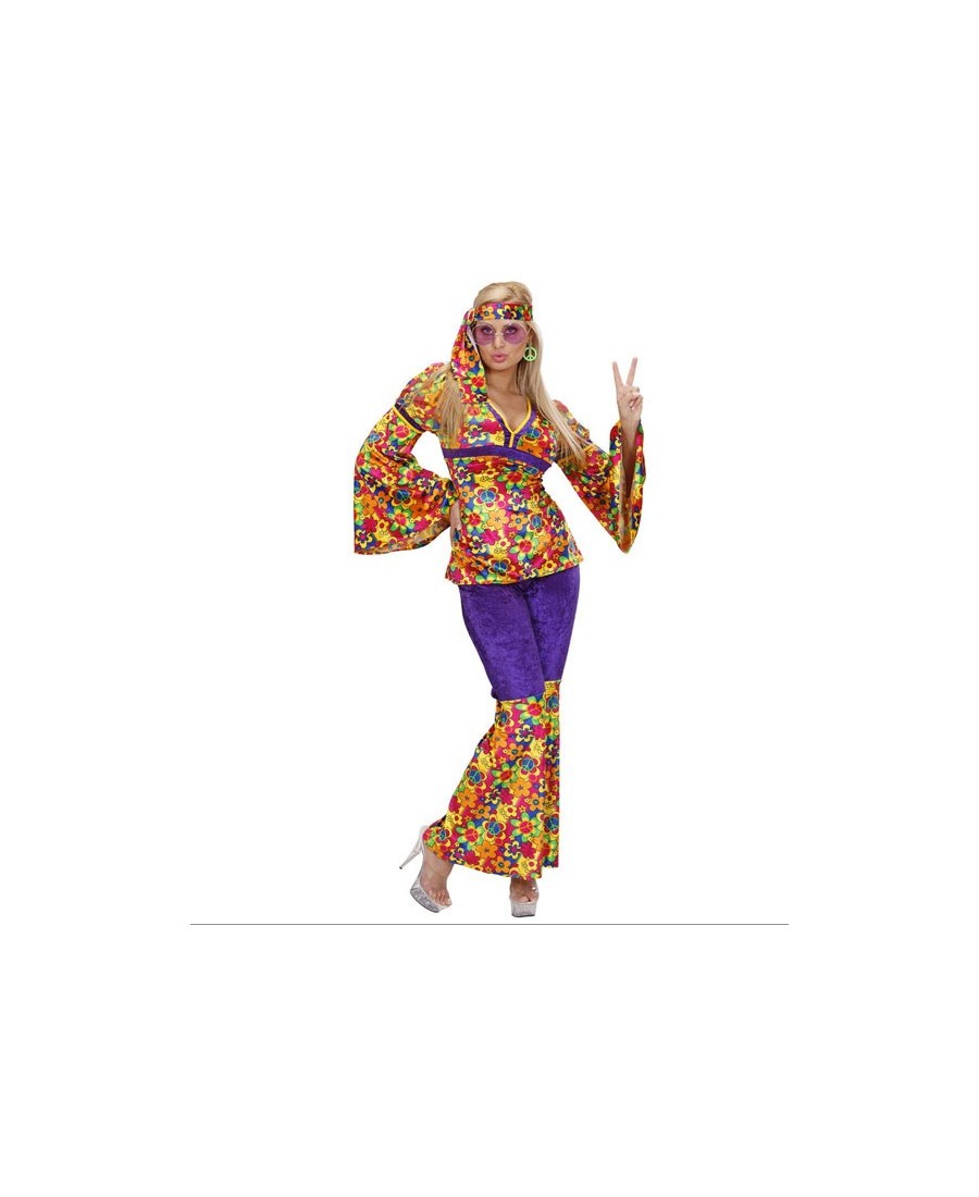 DISFRAZ DE HIPPIE FLOWER POWER PANTALON PARA MUJER