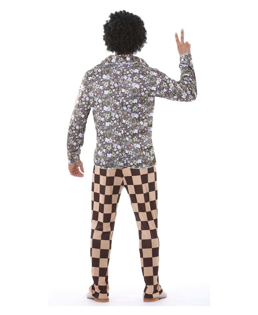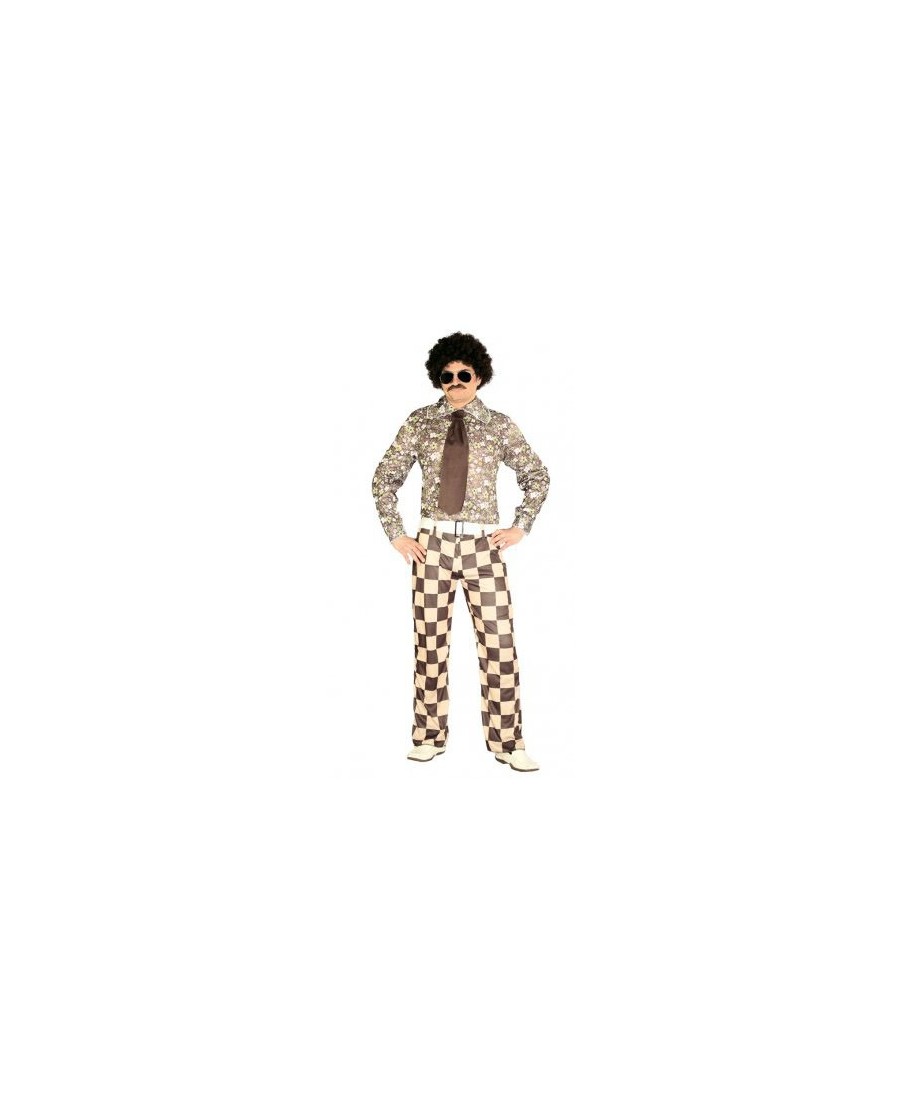 Retrocede atras en el tiempo con este original y vistoso disfraz de los AÑOS 70. Se el mas original de la fiesta con este disfraz compuesto por : Camisa de Flores, Corbata y Pantalón de Cuadros con Cinturón.