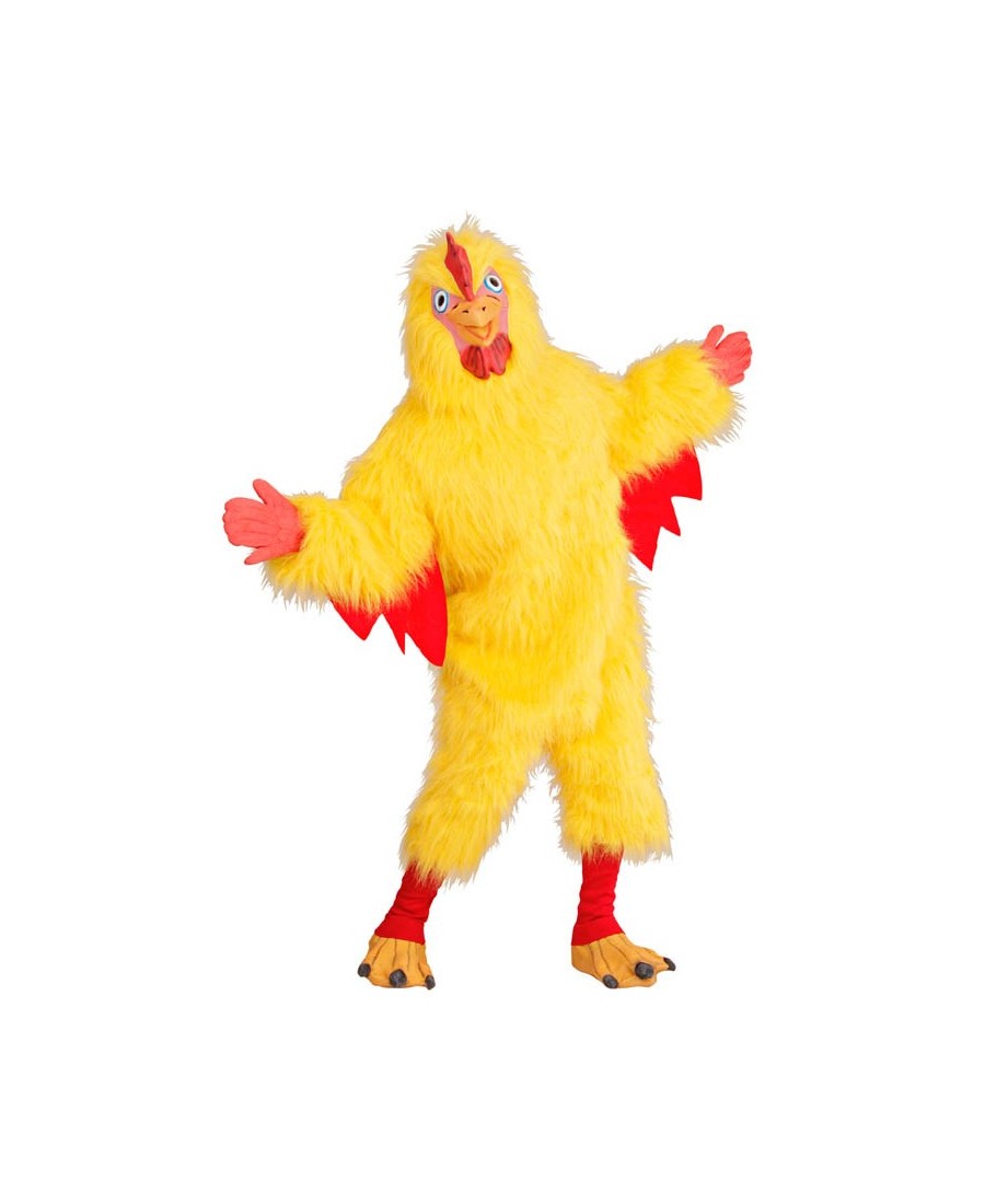Consigue tu disfraz de gallo tipo mascota con buzo, máscara y cubrebotas y conviértete en el personaje más divertido y colorido de la fiesta.